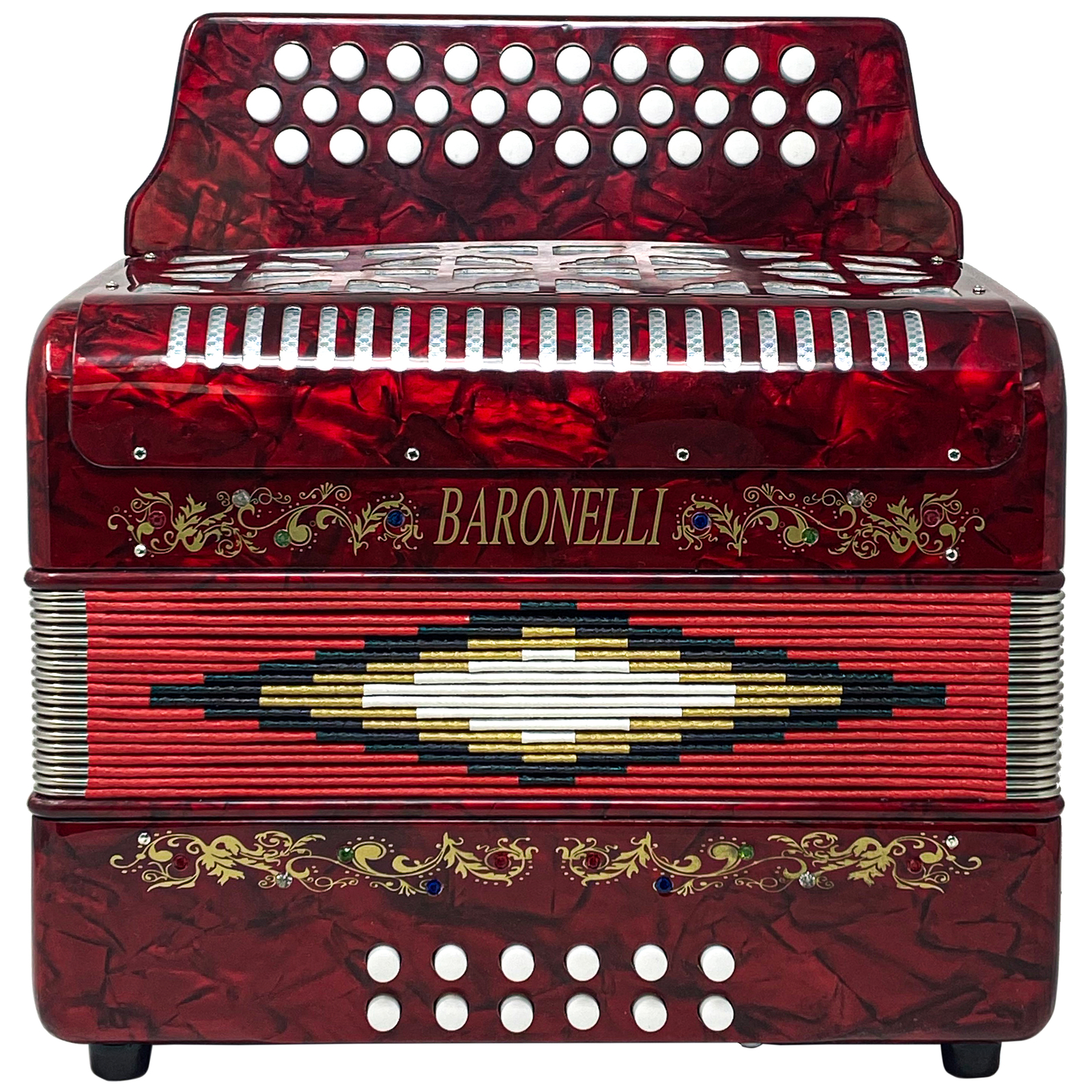Baronelli Full Size 31 Button 12 Bass Accordion Gcf With Straps Case Red 825232570028 Ebay